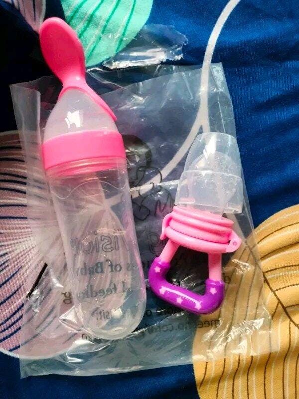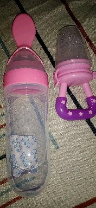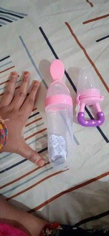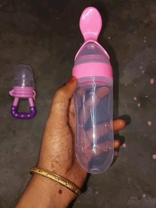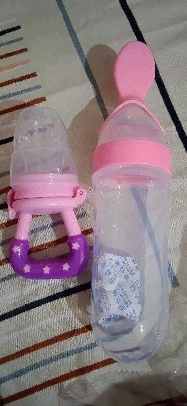 This bottle is designed to easily feed babies purées, juices, milk, and semi-solid foods through a soft silicone spoon — mess-free and comfortable!