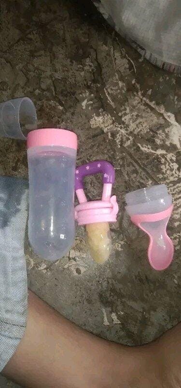 The feeding bottle has a 90 ml capacity, perfect for purees, mashed fruits, or a full baby meal.